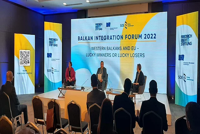 Event News Balkan Integration Forum Podgorica 17.11.2022 From 17th to 18th November, Podgorica was host of another edition of the Balkan Integration Forum, organized by the European Movement in Montenegro in cooperation with the Friedrich Ebert Stiftung Dialogue Southeast Europe. The conference was held under the title “Western Balkans and EU – Lucky winners or luck losers?”. Balkan Integration Forum gathered high-ranking politicians on national and local levels, representatives of the academic community and the civil society, as well as journalists and participants from all over Europe. The conference was opened by H.E. Peter Felten, Ambassador of the Federal Republic of Germany to Montenegro, Kirsten Schoenefeld, FES Head of Office for Serbia and Montenegro and Momčilo Radulović, President of the European Movement in Montenegro. Aside from offering numerous opportunities for exchanges and networking, the program featured four panel discussions “Faster and Smarter Cities for More Efficient Left – Connecting Ideas of Freedom?”, “Where do We Stand Now and What is the Road Ahead – an Overview of the EU Integration Process in the Western Balkans”, “Western Balkans and EU Enlargement – Reflections of the Russian Aggression on Ukraine” and “Positioning of the Western Balkans in Global Relations in the Light of Ukrainian Crisis”. The last panel discussion was also the high-level political discussion featuring inputs from H.E. Milo Đukanović, President of Montenegro, H.E. Željko Komšić, Member of Presidency of Bosnia and Herzegovina and H.E. Stevo Pendarovski, President of North Macedonia. As evident from the list of topics, the conference covered a wide range of contemporary debates, from smart cities and their roles in achieving more security and freedom for the citizens, to the Russian aggression on Ukraine and the implications that it will certainly have in the rest of the region. FES SOE remains strongly committed to advancing social and democratic values, which include supporting the path towards membership in the European Union for the Western Balkan countries.
