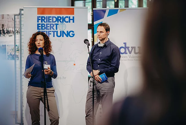 Event News Progressive Peace Policy Dealing With the Past in Vukovar and Banja Luka 30.09.2017 For the Friedrich Ebert Foundations all around the world dealing with the past and a progressive approach to history and peace are crucial cornerstones of its work. Participants had the opportunity to talk to Norbert Mappes Niedieck, which many perceived as inspiring, as it gave them the perspectives from other countries in their attempts of dealing with the past. Dinka Corkalo Biruski, professor at the Faculty of Humanities and Social Sciences in Zagreb expanded on the notion of “victimhood competition”, stressing that for the entire process of reconciliation it is essential to listen to other peoples’ stories. Participants concluded that most what they know of the past comes from media and the internet, while school curricula address these issues poorly. Following this event, the FES BiH office in Banja Luka, organized a regional conference titled “Critical Culture of Remembering – Between Memory, Denial and Condonation – How Do We Treat the Past” on September 28th in cooperation with a local NGO in Banja Luka called “Oštra Nula”. The conference addressed the conflict of ideological paradigms and the influence of the World War II narrative with regional relations. Most participants agreed that critical culture towards remembering and commemoration is severely jeopardized, as the wrong perception of one’s own history has become central in the public discourse. Participants emphasized that none of the local societies could go forward until they confront themselves with their recent past adding that it is vital to search outside of the absurdity of war and remember it as a collective calamity where innocents suffer. Everyone agreed that it is pointless to try and identify the winners and the losers of, but rather try and rebuild society around ideas of equality, justice and peace.