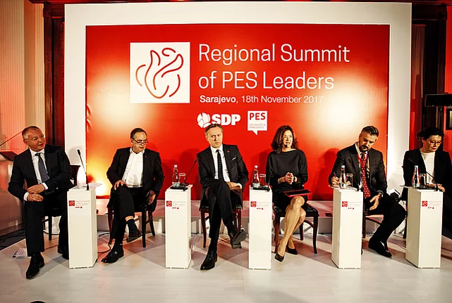 Event News Social Democratic Politics and Values PES Regional Forum Sarajevo 22.11.2017 The Friedrich-Ebert-Stiftung organized several events on the fringes of a "PES Regional Leaders Summit", hosted by Socijaldemokratska partija Bosne i Hercegovine in Sarajevo on November 18th. The forum provided opportunities to exchange perspectives among over 150 stakeholders from across the left spectrum in the Western Balkans and several members of the S&D group including vice-president Tanja Fajon, foreign affairs spokesperson Knut Fleckenstein, S&D shadow rapporteur for Bosnia and Herzegovina Demetris Papadakis as well as PES president Sergei Stanishev and S&D-affiliated think tanks. In the midst of representatives of regional PES member-parties, Zoran Zaev, Prime Minister of the Republic of Macedonia, addressed both the Summit and an Agora Session on „The renewal of the Left in Southeast Europe“, stressing the importance of Social Democracy opening up to stakeholders beyond party-bases, i.e. especially activists from civil society. According to Zaev, the democratic turn in Macedonia was only possible through the SDSM joining a much broader civic coalition for political change. Zaev further insisted on his vision of building election platforms based on core social democratic values, including a strong emphasis on redistributive policies. In the ensuing discussions, activists and junior party members urged Zaev as well as the leaderships of their respective parties to avoid the „transitional traps“ of relying too heavily on foreign investment and continued privatization, whithout safeguarding workers' rights and, crucially, without socializing the profits. Another key recommendation that was taken up were ambitious targets for average national incomes throughout the region. In the course of further workshops stakeholders exchanged on social democratic perspectives on gender and generational relations in Southeast Europe and questioned economic narratives from privatization to austerity and competitiveness. The Regional Leaders Summit was as joint initiative of SDP BiH, the S&D group in the European Parliament, the European Forum for Democracy and Solidarity and Olof Palme International Center. A similar meeting was announced to take place on the fringes of the EU-Western Balkans Summit organized by the Bulgarian EU Presidency in May of next year in Sofia.