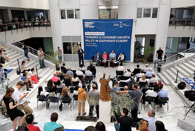 Event News Social and Economic Justice Towards a Sustainable Growth Policy in Southeast Europe 25.08.2018 Even before the financial and economic crisis of 2008, the economic development path of Southeast European countries was marked by significant deficits: low labor productivity, high unemployment, low level of exports of goods, weak institutions and a distorting impact of political interests on the economic activities such as clientelism and corruption. The crisis has further deepened the deficits and caused even more problems, especially an increase of public debt and deficit. It is not likely that the countries of the region will be able to solve their economic problems and foster economic development by pursuing conventional economic policies as before the crisis alone. As a cooperation among several national offices and Dialogue Southeast Europe and coordinated by FES Zagreb, the Friedrich-Ebert-Stiftung initiated a process of reflection among leading economic experts from (Southeast) Europe already in 2015. This exchange was meant to focus on one key question: "Why has the political economy agenda that many countries in Southeast Europe have adopted in order to comply with financial assistance and/or as part of EU-accession requirements either manifestly underperformed or even failed to deliver tangible results?" The comparative project has been based on a set of international conferences in Bulgaria, Croatia, Greece, Macedonia, Romania, Serbia and Slovenia. The objective has been to attract the interest of policymakers and their advisors, researchers and practitioners. Together, we have sought to engage in discussions about the merits of formulating an economic agenda that can shift the goal posts from recession to sustainable recovery and coherent reform. In-depth country analyses and studies have been prepared and recommendations for each respective country, as well as for the region as a whole, have been formulated and discussed. These papers provide insights and ideas for a more socially just and sustainable economic policy in Southeast Europe. With public events in Skopje, Ljubljana and Bucharest, we have been able to reach out to policymakers on the on the government level, labor union leaders and economic experts around the region. The comparative findings will be presented for the first time in their entirety at a regional launch conference in Belgrade in September.
