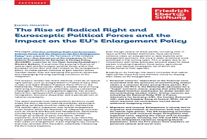 Publication Publication Social Democratic Politics and Values Publication Political Trends & Dynamics Factsheet: The Rise of Radical Right and Eurosceptic Political Forces and the Impact on the EU’s Enlargement Policy This factsheet provides a condensed outline on how the growing influence of radical right and Eurosceptic parties is reshaping EU politics—and what this means for the future of EU enlargement.